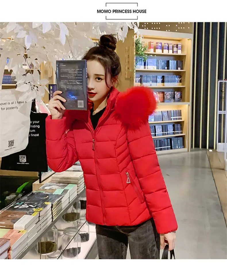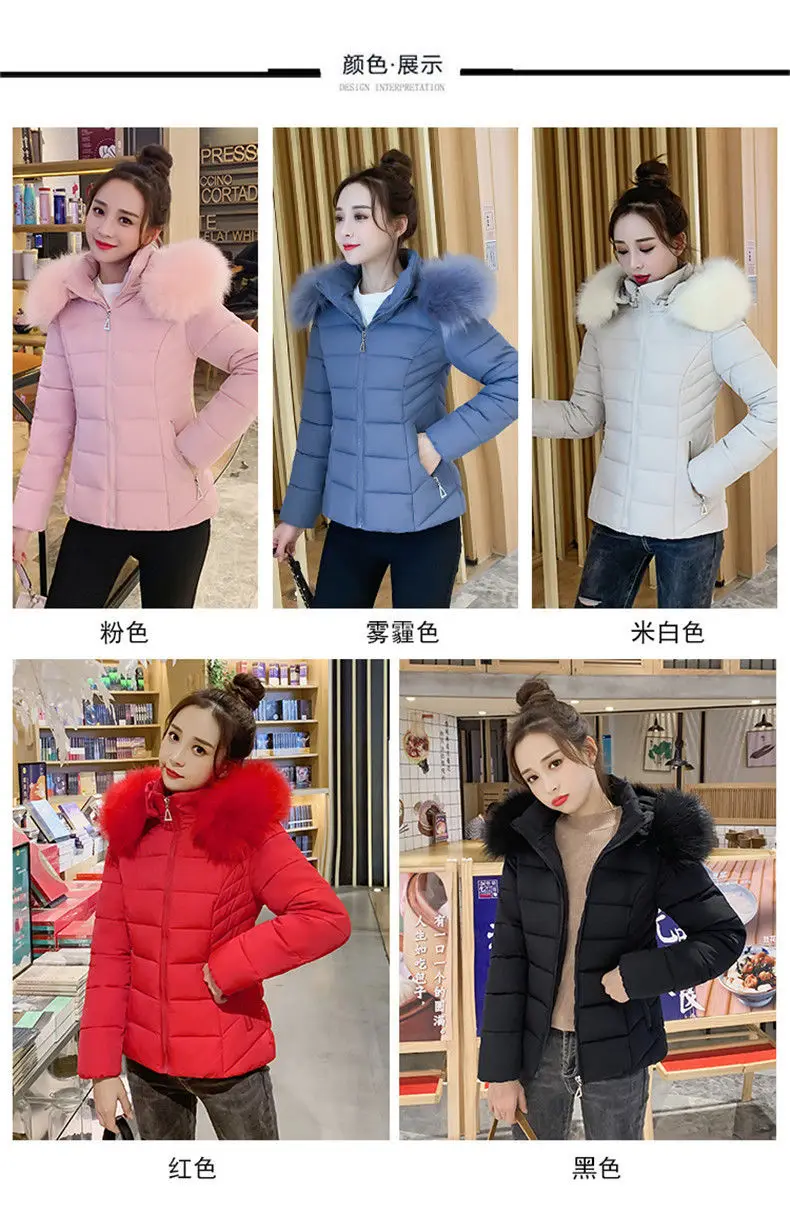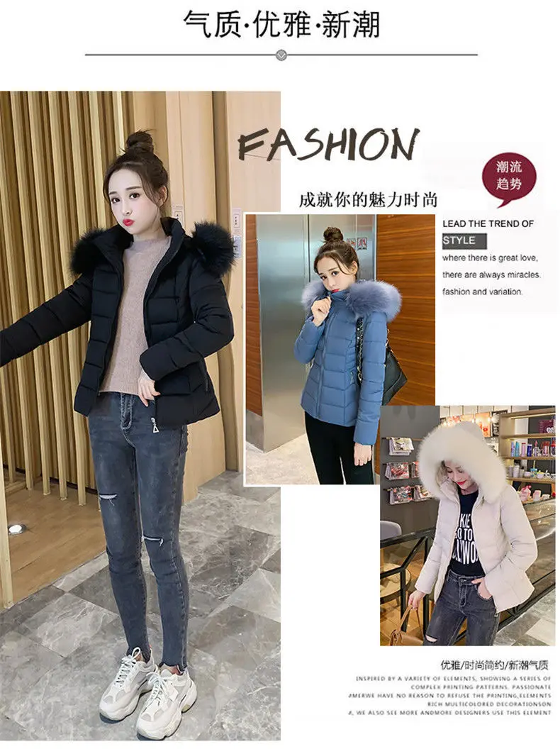 Fashion Winter Jacket Women 2025 New Korean Big Fur Collar Hooded Thick Down Parkas Female Short Coat Slim Warm Outerwear R047