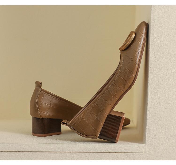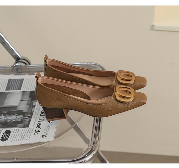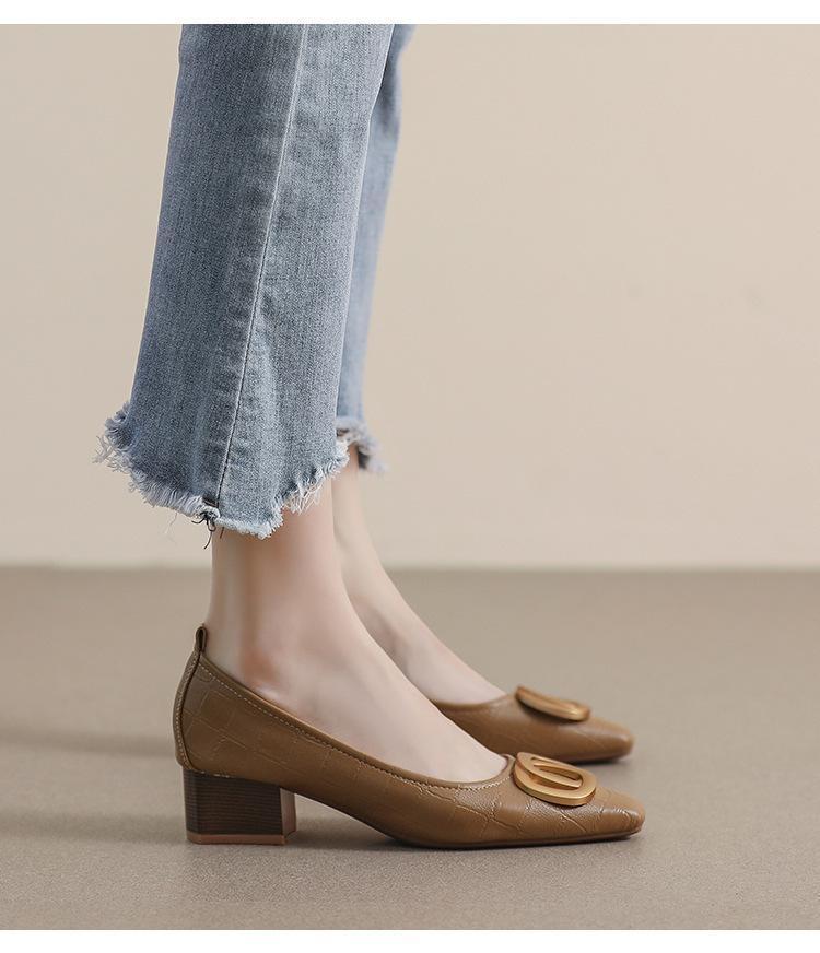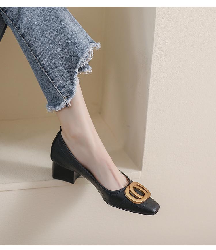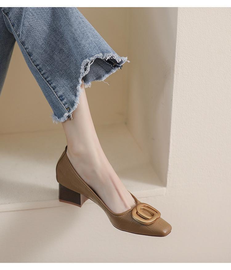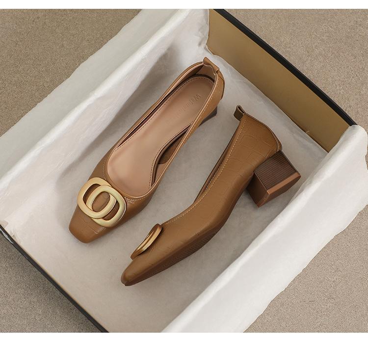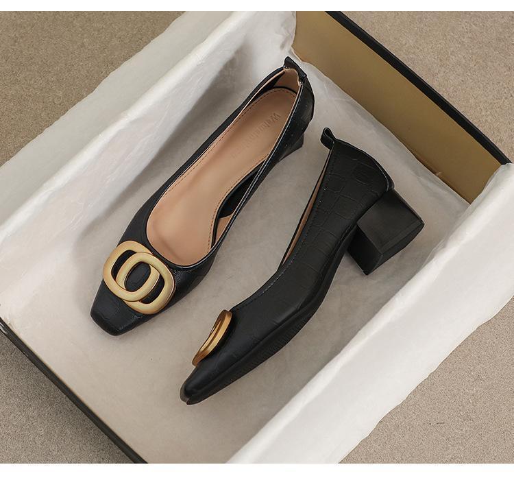 French Square Head Women's Work Shoes Temperament Fairy Style Pumps Chunky Heel