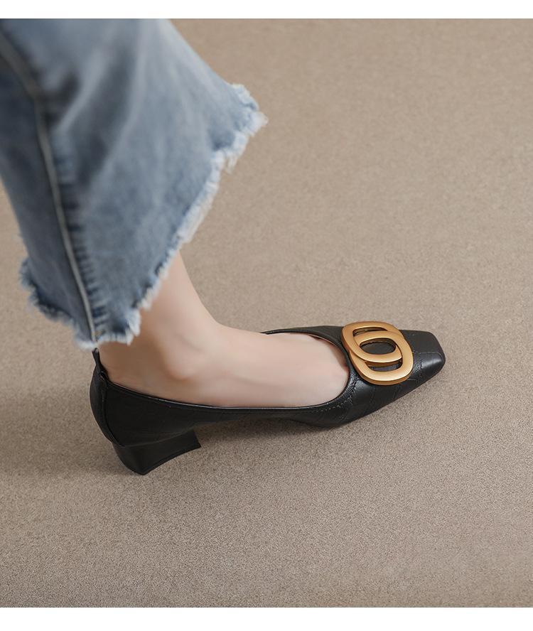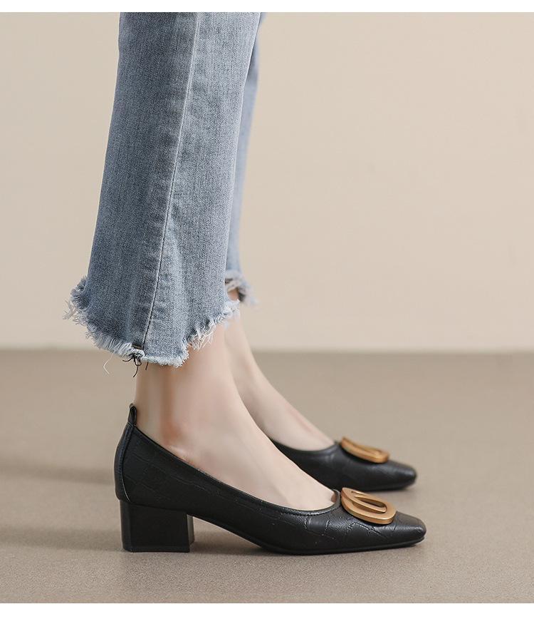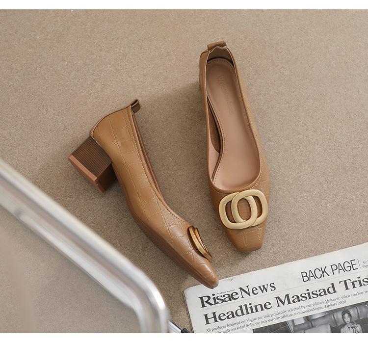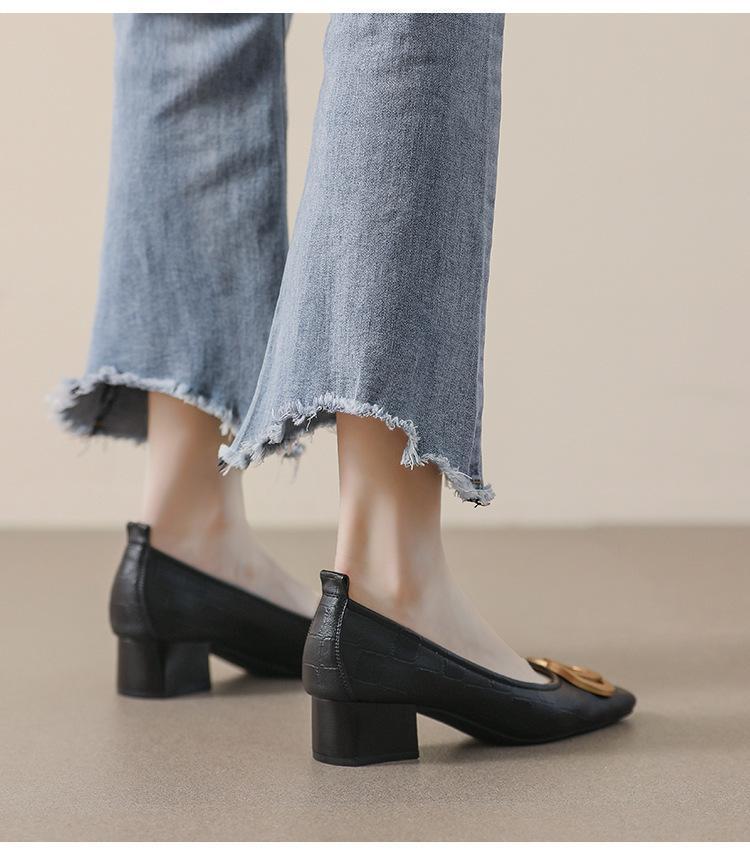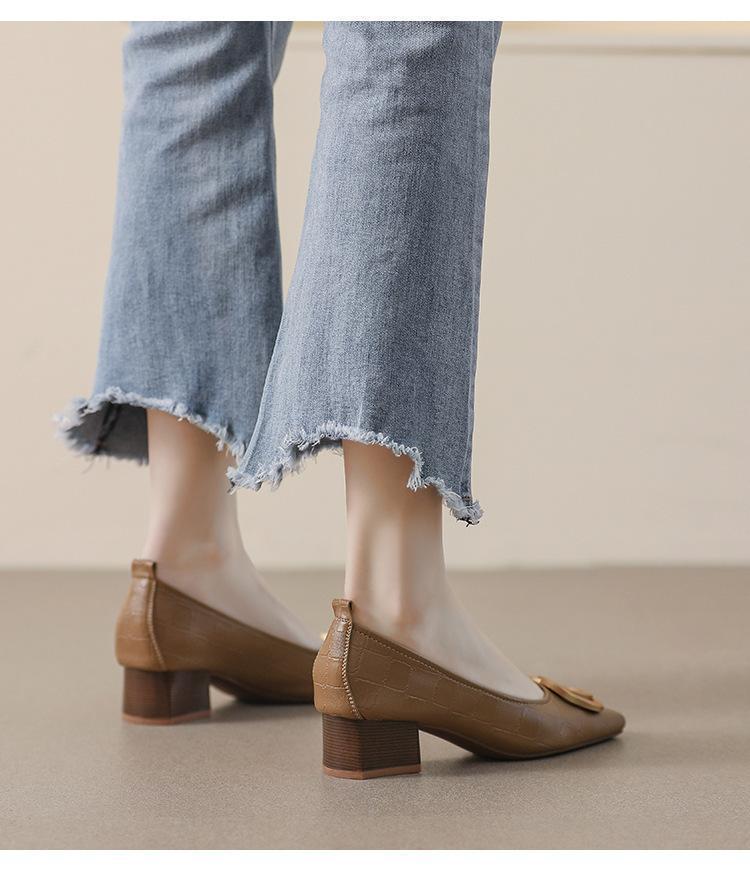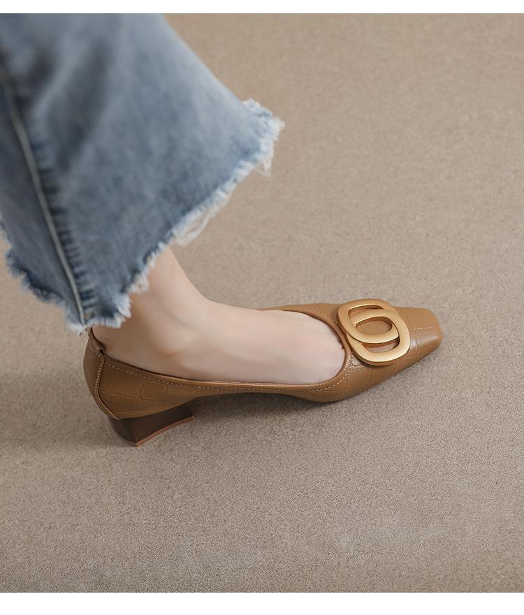 French Square Head Women's Work Shoes Temperament Fairy Style Pumps Chunky Heel