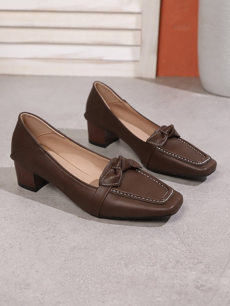Plus Size Spring Square Head Bow Pumps