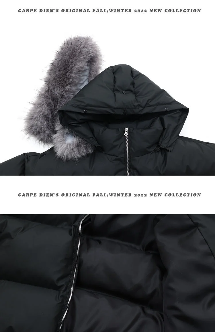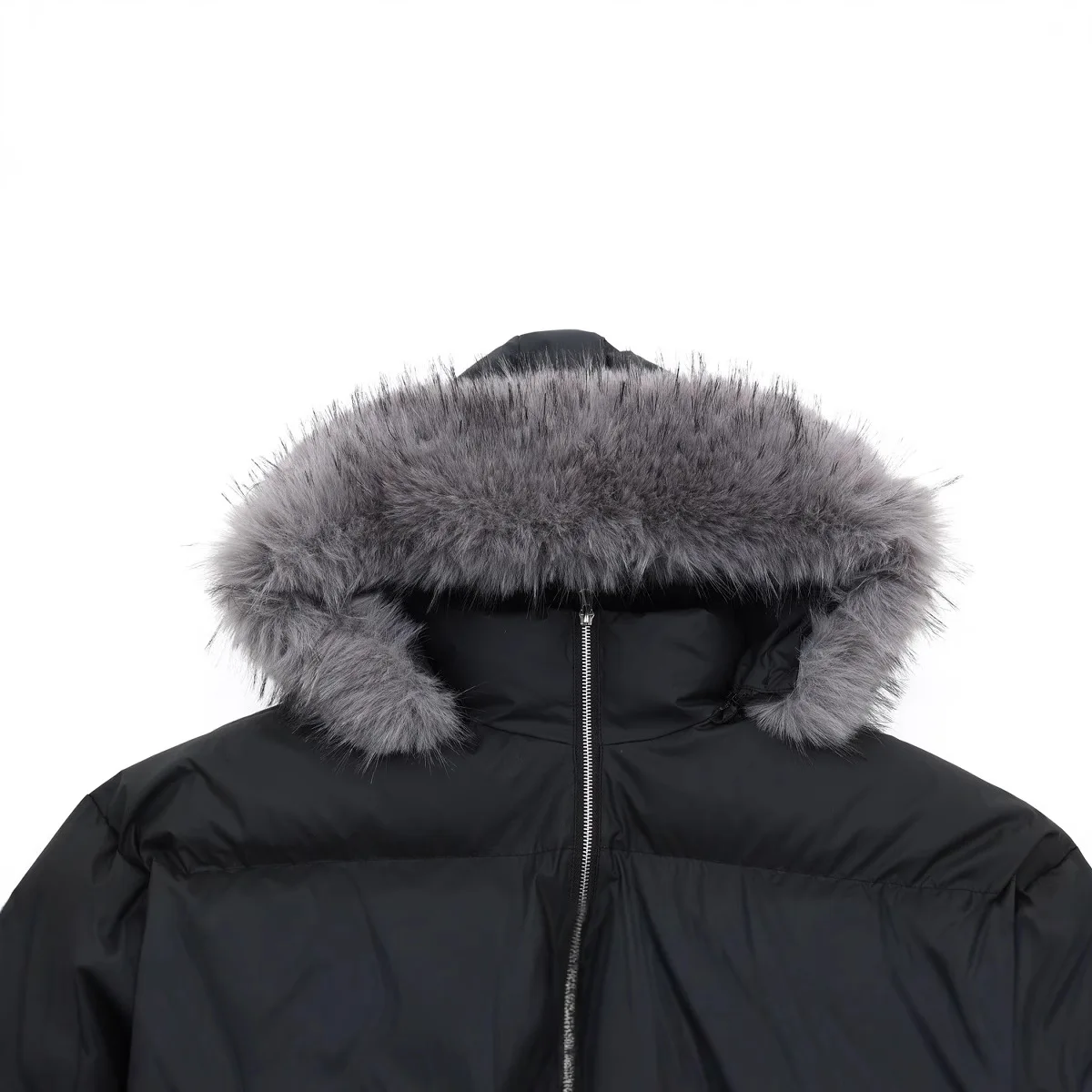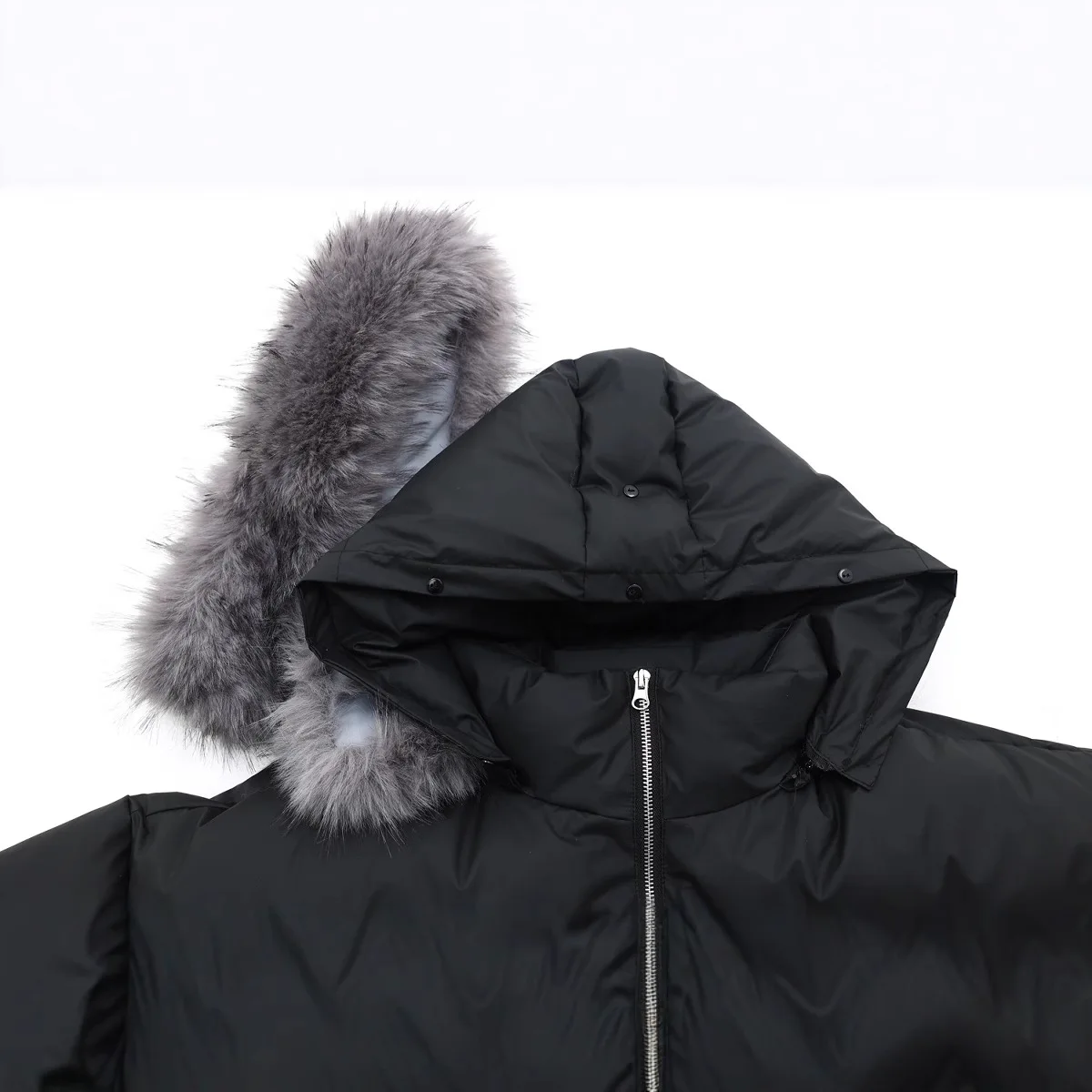Black dot appearance design: Adopting a classic black tone, the silhouette is full and three-dimensional, and the short version is sharp and neat. Equipped with a hooded design with gray plush, the plush texture is fluffy and soft, which not only enhances warmth but also adds luxury and fashion.