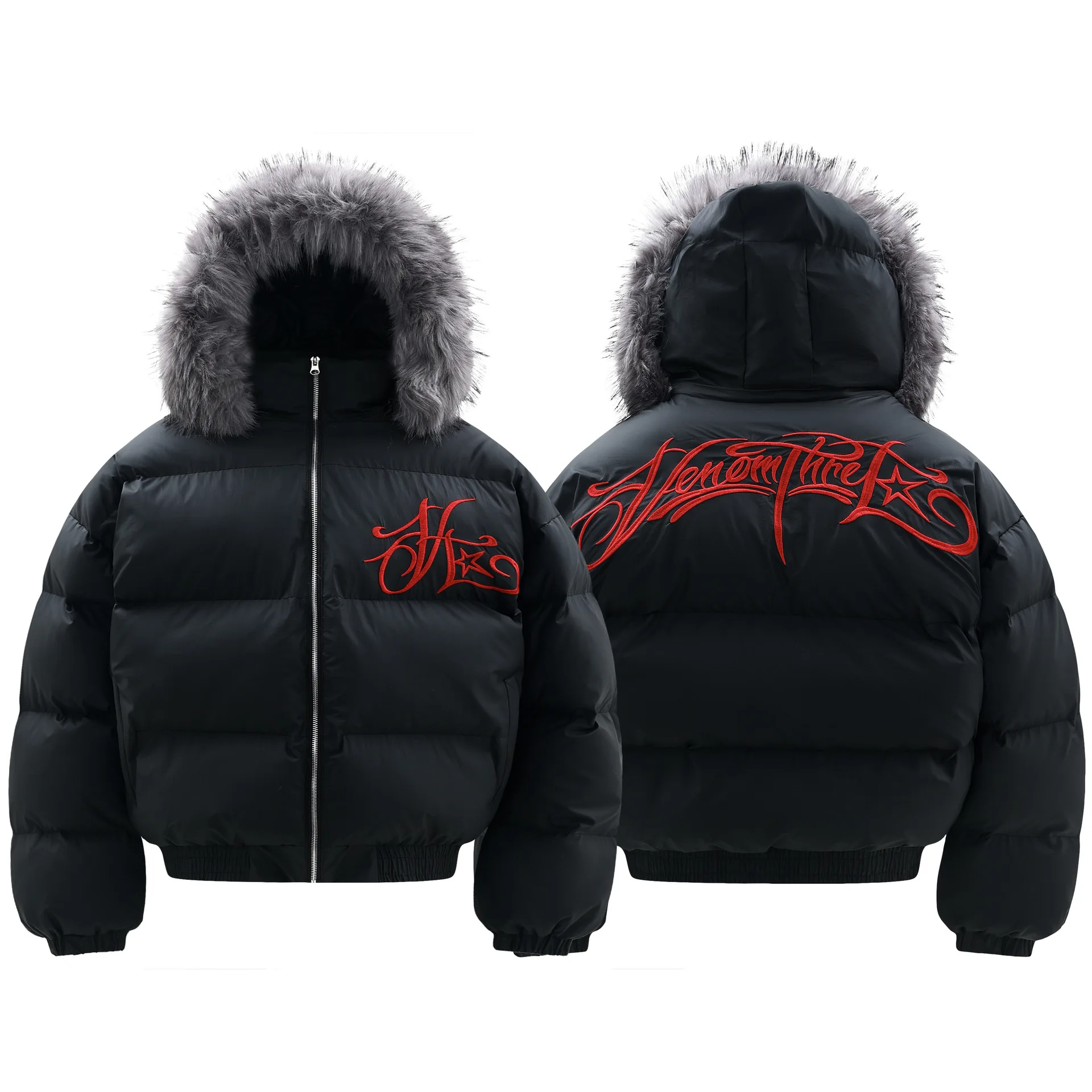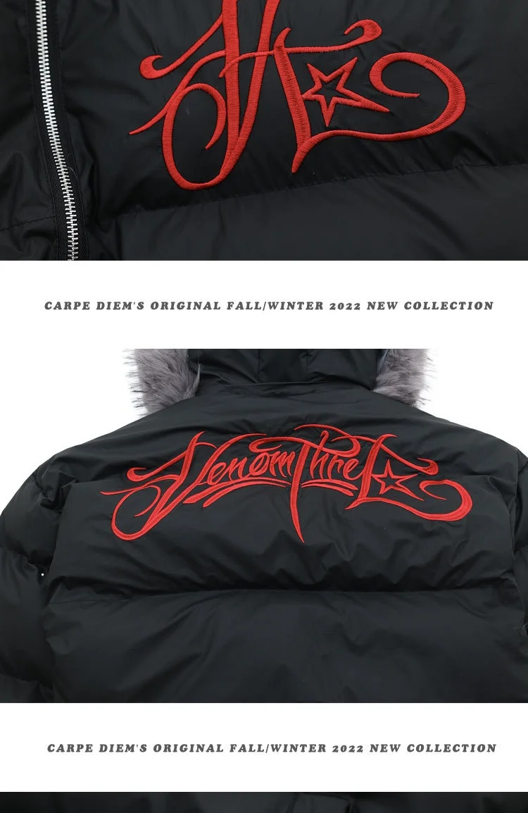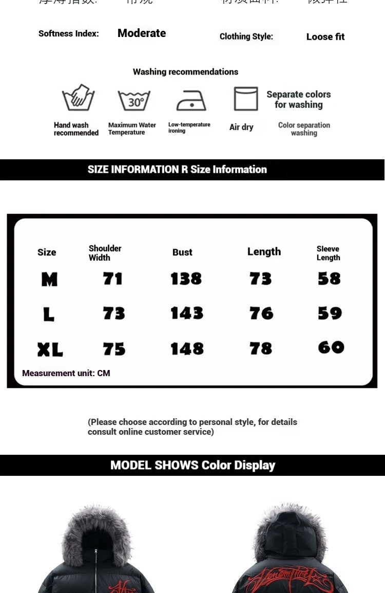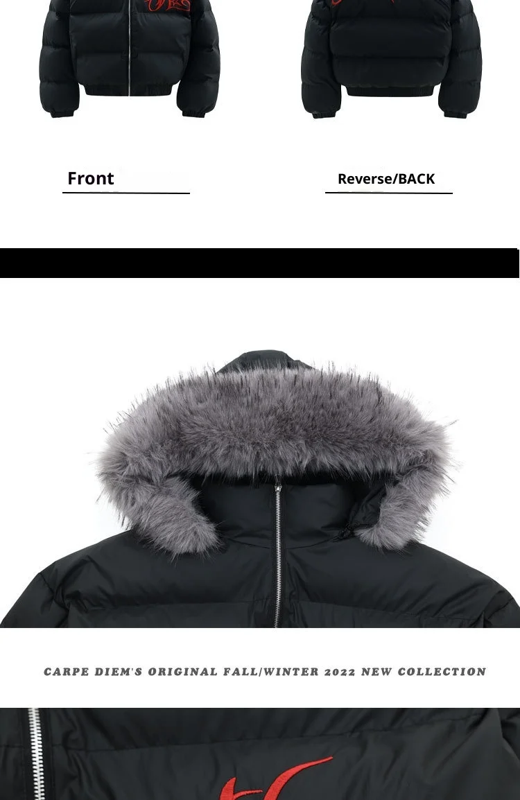 Winter Jacket Men Women Loose Thick Warm Bomber Cotton Hooded Coat Detachable Fur Collar Embroidered Design Outdoor Windproof