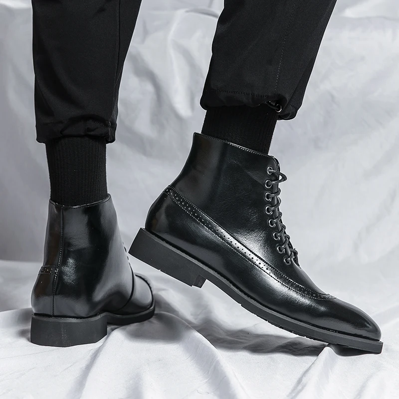 Winter Trend High Top Workwear Shoes Tips Thick Soles for Men's Business Dress Shoes British Style Men's Leather Ankle Boots