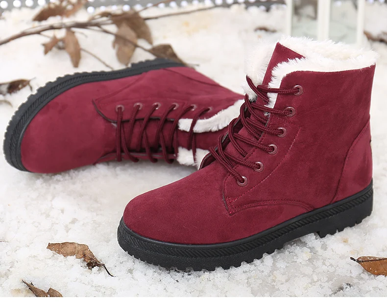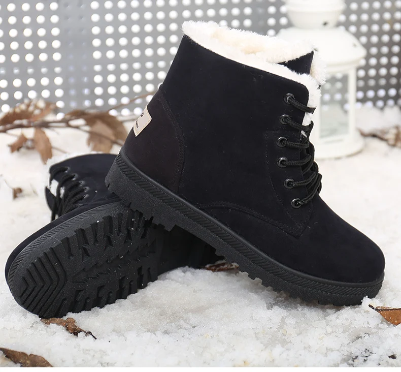 Womens Boots Warm Fur Botas Mujer 2025 Winter Shoes For Woman Snow Boots Low Heels Ankle Boots Winter Black Footwear Female